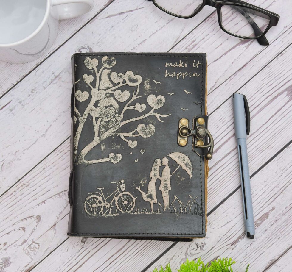 vintage handmade leather journal. Crafted with genuine leather, it radiates authenticity and charm, perfect for those who appreciate classic craftsmanship. The premium antique lock closure adds a touch of elegance and security, ensuring your thoughts and memories are safeguarded within its pages. Inside, you’ll discover 200 brown handmade pages, providing ample space for your musings, sketches, and stories to unfold. Whether it’s for journaling, sketching, or planning, this versatile journal is a timeless companion for your creative endeavors. Treat yourself or a loved one to this exquisite piece, a celebration of tradition and creativity