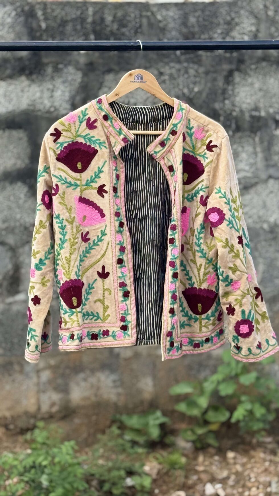 Luxurious velvet jacket featuring intricate Suzani embroidery. Perfect blend of elegance and tradition โ ideal for festive and ethnic occasions.